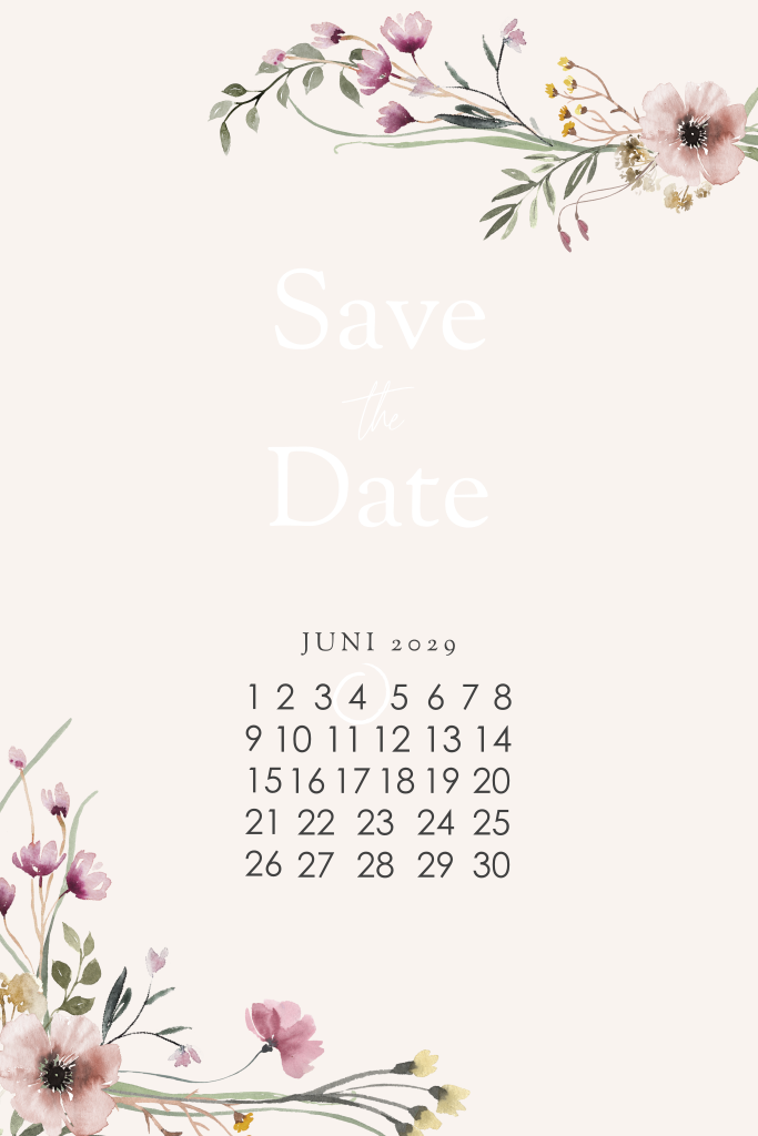 Stuur deze romantische Save the Date kaart naar de bruiloftsgasten. Op de Save the Date staat een kalender, waar je de datum van jullie trouwdag kan omcirkelen. De tekst wordt in roséfolie gedrukt. Deze kaart past bij een trouwkaart in dezelfde stijl.