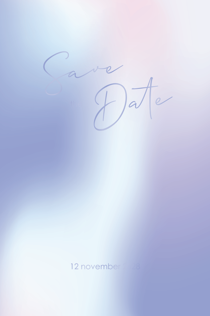 Maak een originele paarse Save the Date kaart met hoogglans. Op de kaart wordt holografische print gedrukt met hoogglans. Deze Save the Date past bij een trouwkaart in dezelfde stijl.| Totaalprijs: 0 |