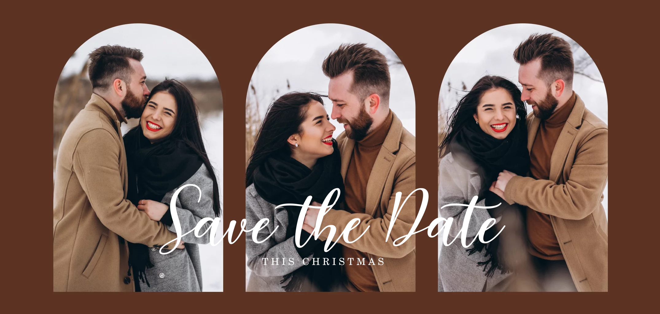 Maak een bijzondere kerst met deze kerst Save the Date kaart met foto's en goudfolie. Geef een leuk kerstcadeau aan jullie vrienden en familie door jullie trouwdatum met kerst bekend te maken. De foto's op de voorkant van de kaart kunnen uit verschillende momenten in jullie relatie komen of een selectie zijn uit een fotoschoot. In de opmaker kun je zelf alle attributen van deze kaart aanpassen.