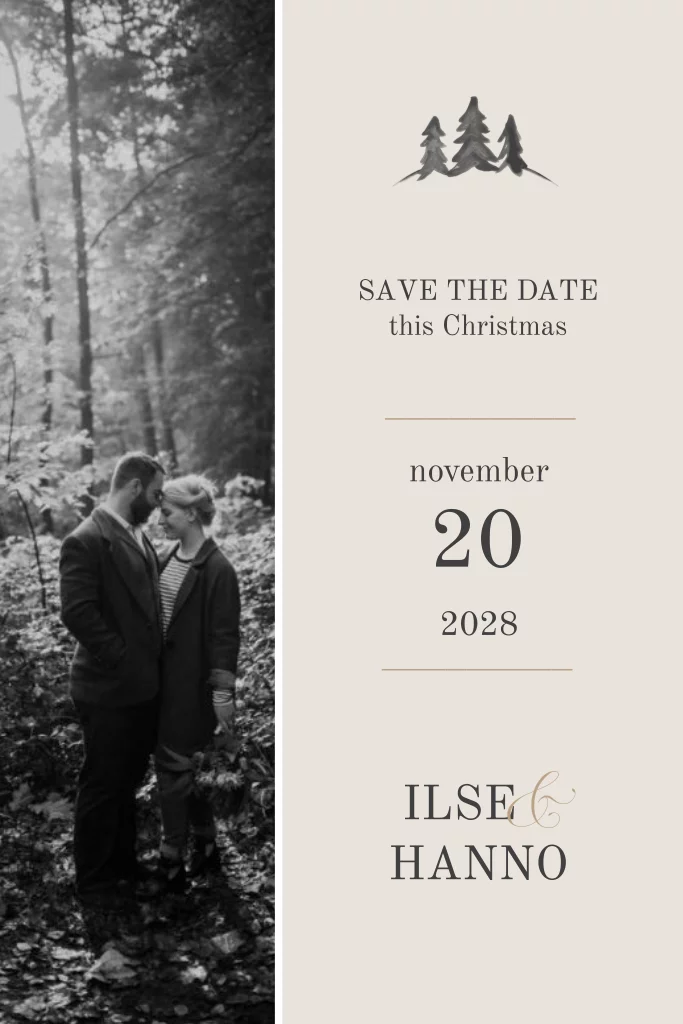 Deze klassieke Save the Date kerstkaart maakt deel uit van de trouwkaarten set Ilse.