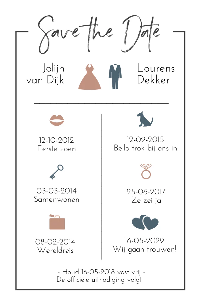 Save the Date infografic met icoontjes en foto