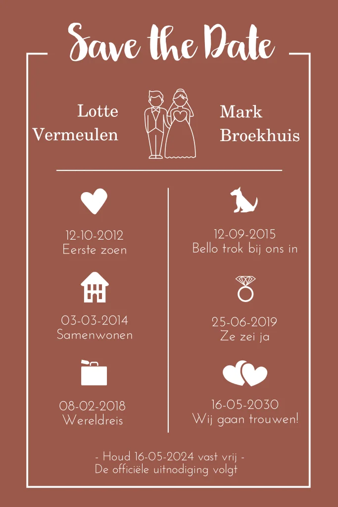 Vul jullie mijlpalen in in deze originele infografic met icoontjes en foto. In onze clipart vind je meer icoontjes om te gebruiken.