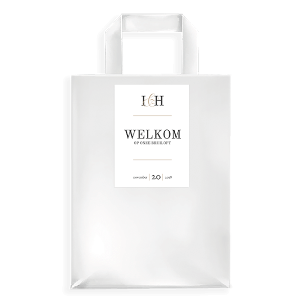 Bestel een sticker voor goodiebag bruiloft. Dit is een goodiebag sticker in klassieke stijl en rechthoekig formaat. Voorzie je gasten van een goodiebag met producten voor jullie bijzondere dag.| Totaalprijs: 0 |