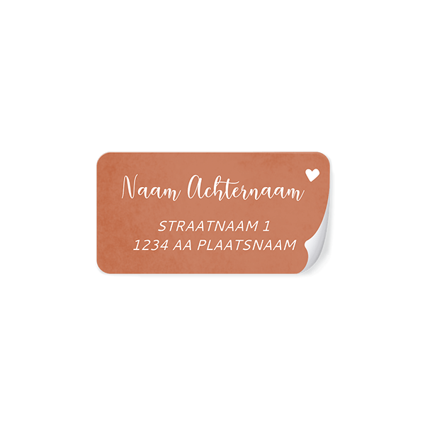 Maak zelf adresstickers in roestbruin met een harjte. Op elk vel staan 24 stickers van 65x34mm. Kies eerst hoeveel vellen je nodig hebt, voordat je verder gaat.