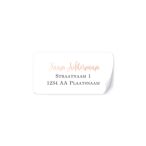 Maak zelf adresstickers met ronde hoeken en roséfolie. Deze adresstickers hebben afgeronde hoeken en zijn 97x34mm. Je bestelt ze per 24 stuks op een vel. Je voert zelf de adressen in per stuk en per vel. Kies eerst hoeveel adresstickers je nodig hebt, voordat je verder gaat.