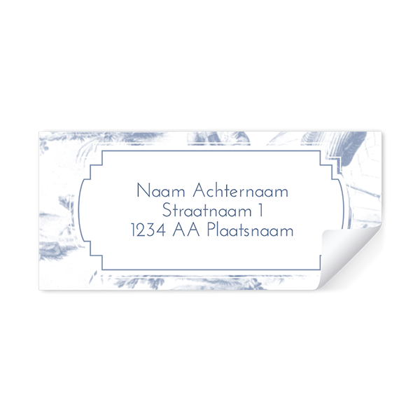 Ontwerp zelf adresstickers voor op de envelop om je trouwkaart. Zo hoef je niet alle adressen zelf te schrijven en het ziet er ook nog eens stijlvol uit. Dit zijn vintage adresstickers met Toile de Jouy.| Totaalprijs: 0 |