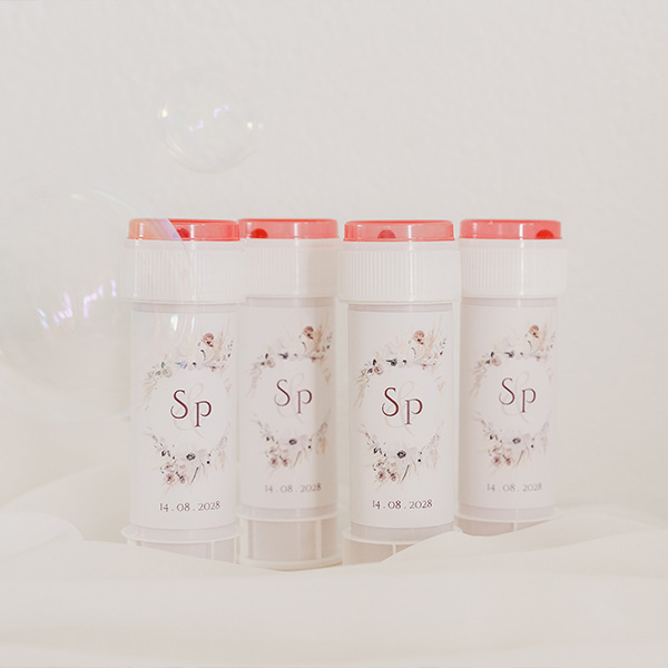Ontwerp je eigen etiket voor op je belleblaas. Deel de bellenblaas ui aan jullie gasten om te gebruiken op jullie dag of als bedankje