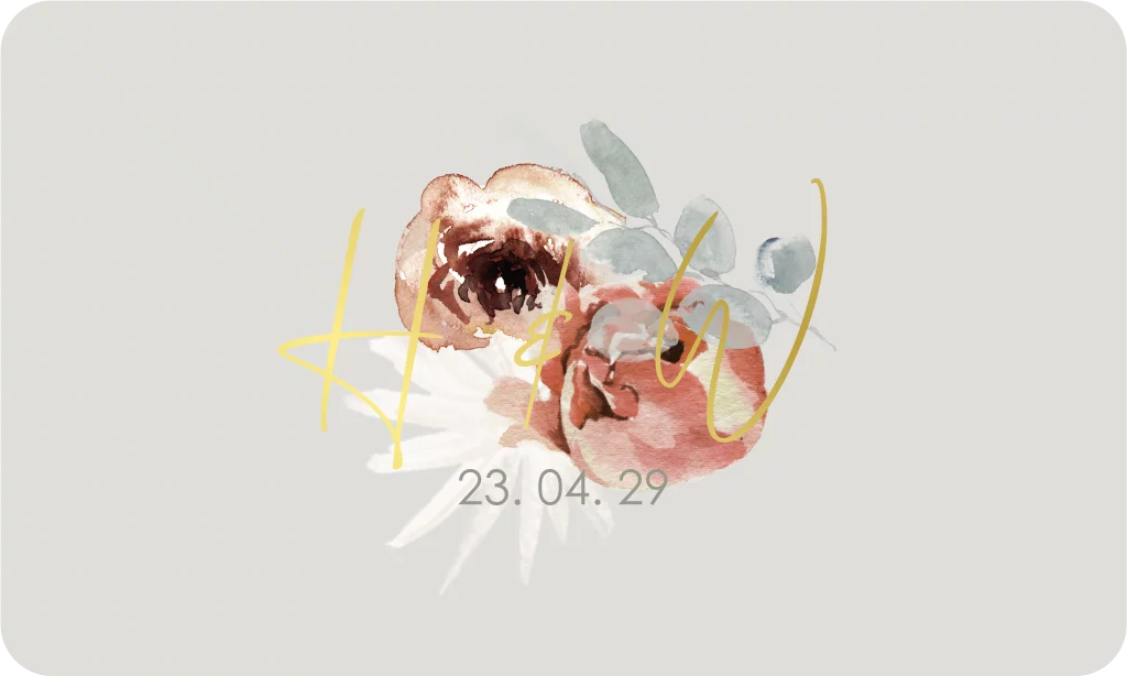 Bestel een etiket voor waterflesjes. Dit is een etiket met bloemen en jullie initialen in goudfolie.| Totaalprijs: 0 |