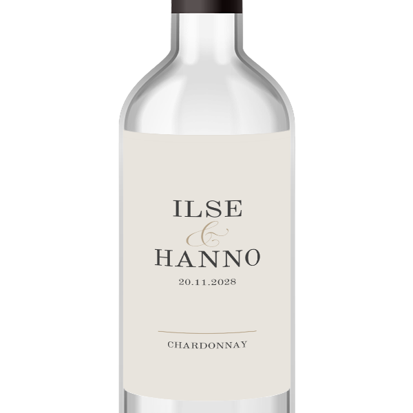 Dit stijlvolle etiket voor een wijnfles maakt deel uit van de trouwkaarten set Ilse.