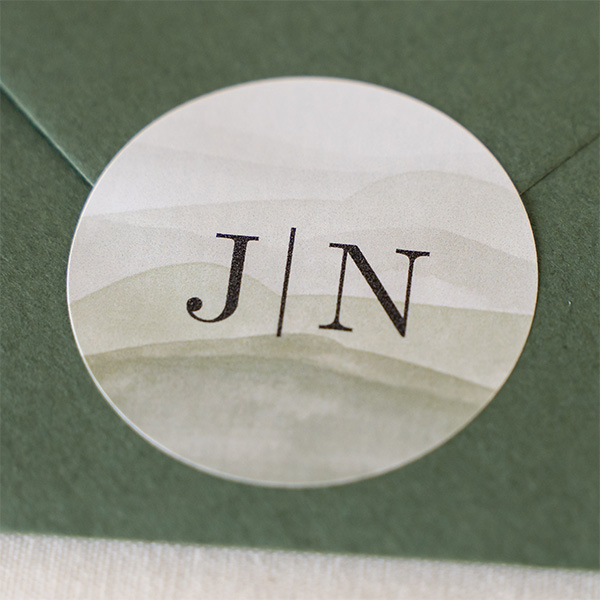 Sluit de envelop met deze groene sticker. Laat jullie initialen weer terug komen! Zo maak je alles in één stijl en valt de envelop lekker op bij de post. Hoe leuk is dat.
