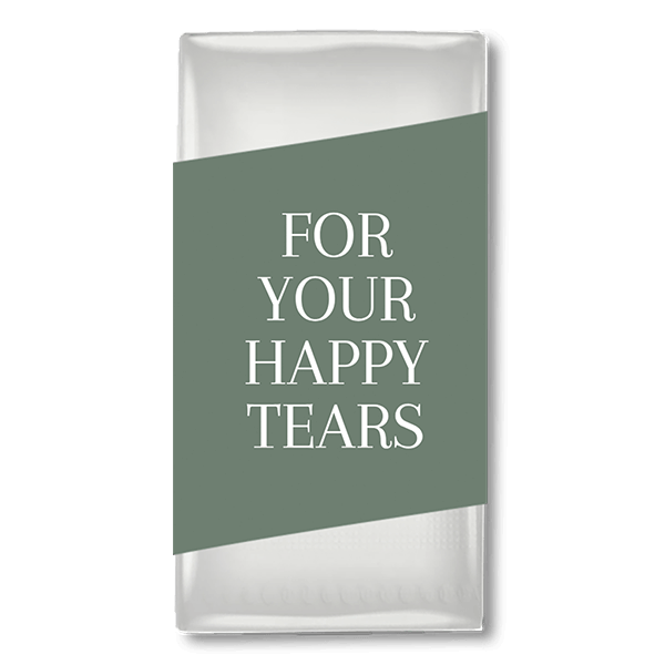 Happy tears sticker als omslag voor zakdoekjes. Ontwerp je zelf een mooie sticker for your happy tears. Leuk voor bij de trouwceremonie. De stickers kunnen het beste op de verpakking van de zakdoekjes geplakt worden, maar op de zakdoekjes zelf kan ook. Wij leveren alleen de stickers en niet de zakdoekjes.