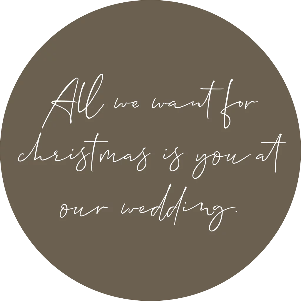 Sluit de envelop met deze leuk sticker met de tekst: All we want for Christmas is you at our wedding.