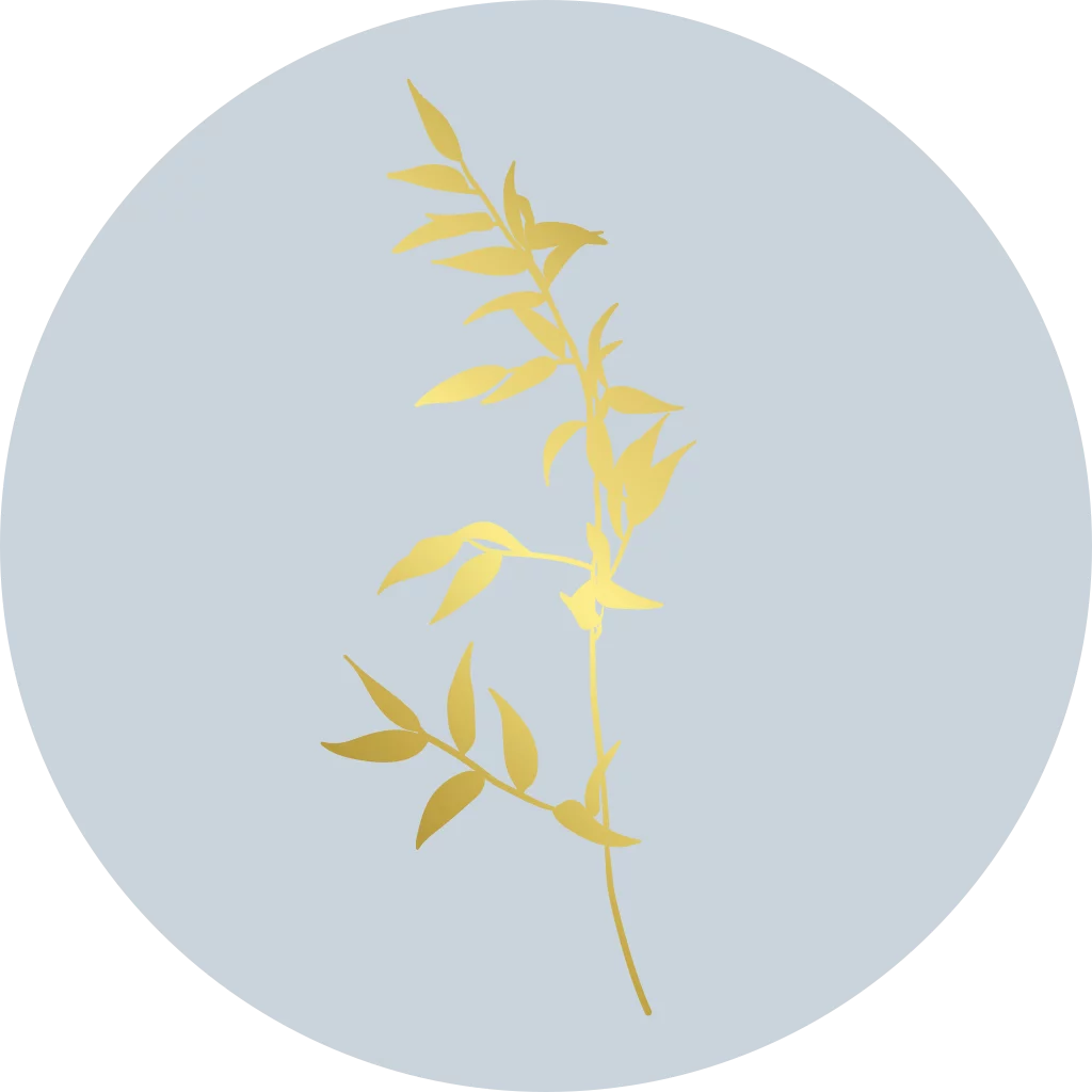 Een chique sluitzegel met een takje van goudfolie. Gebruik deze sticker om de envelop om je trouwkaart te sluiten. Verschillende formaten mogelijk