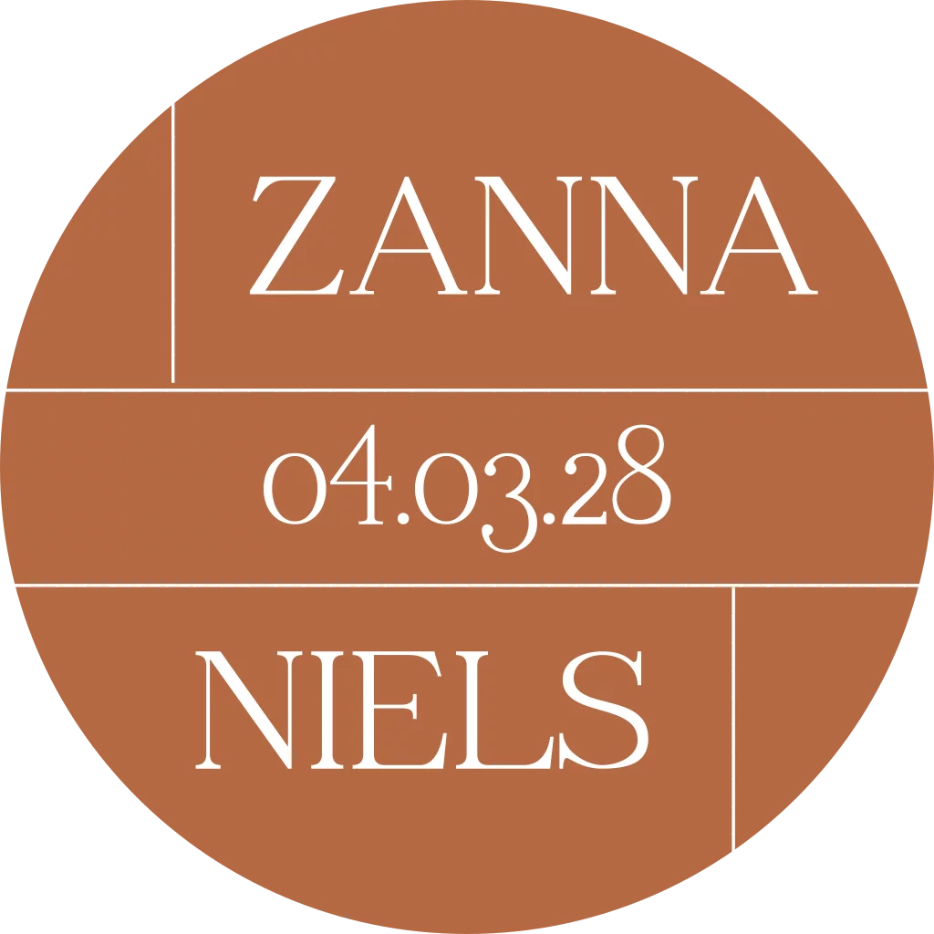 Een sluitsticker die past bij de trouwkaart in moderne stijl. Zo sluit je de envelop in stijl. Teksten en kleuren kun je zelf aanpassen in de editor.* Ontwerp in stijl van de kaart