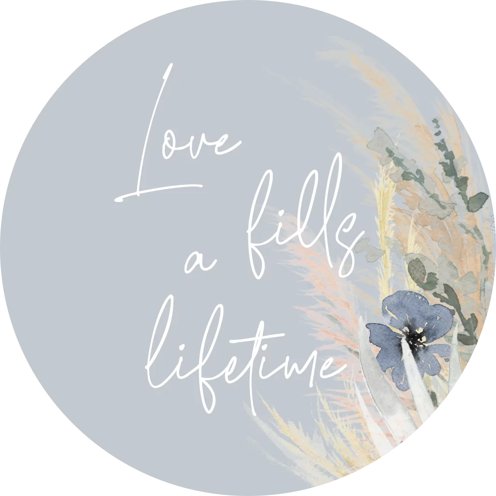 Maak een blauwe sluitzegel met droogbloemen. De achtergrond en de bloemen kunne in de beeldbank worden aangepast.