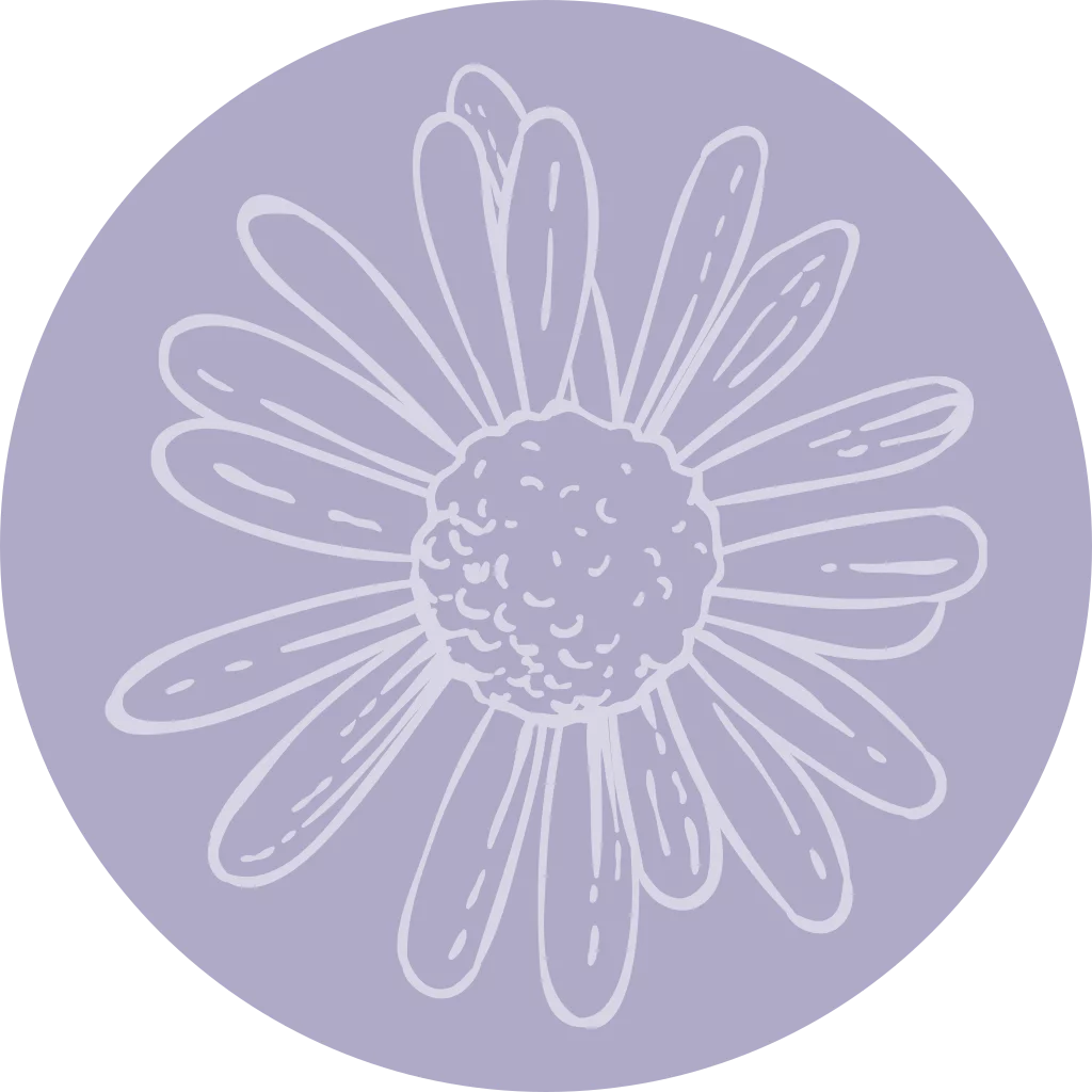 Deze paarse sluitzegel met bloem maakt deel uit van een trouwkaartenset.