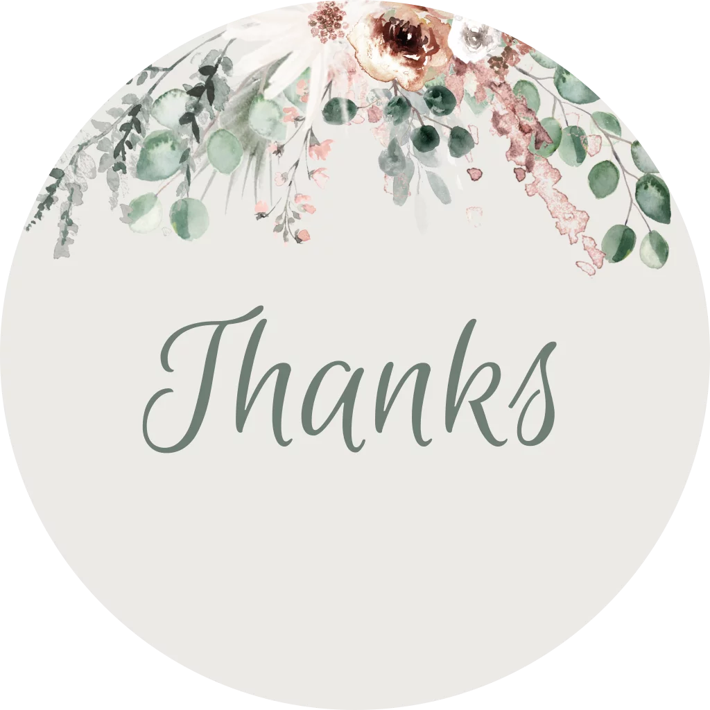Maak een sticker met bohemian bloemen voor op een bedankje. Deze sticker past bij een trouwkaart in dezelfde stijl.