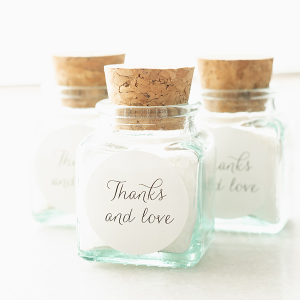 Plak op je bedankje een mooie stikcer met de tekst Thanks and love. Naar eigen wens helemaal aan te passen.