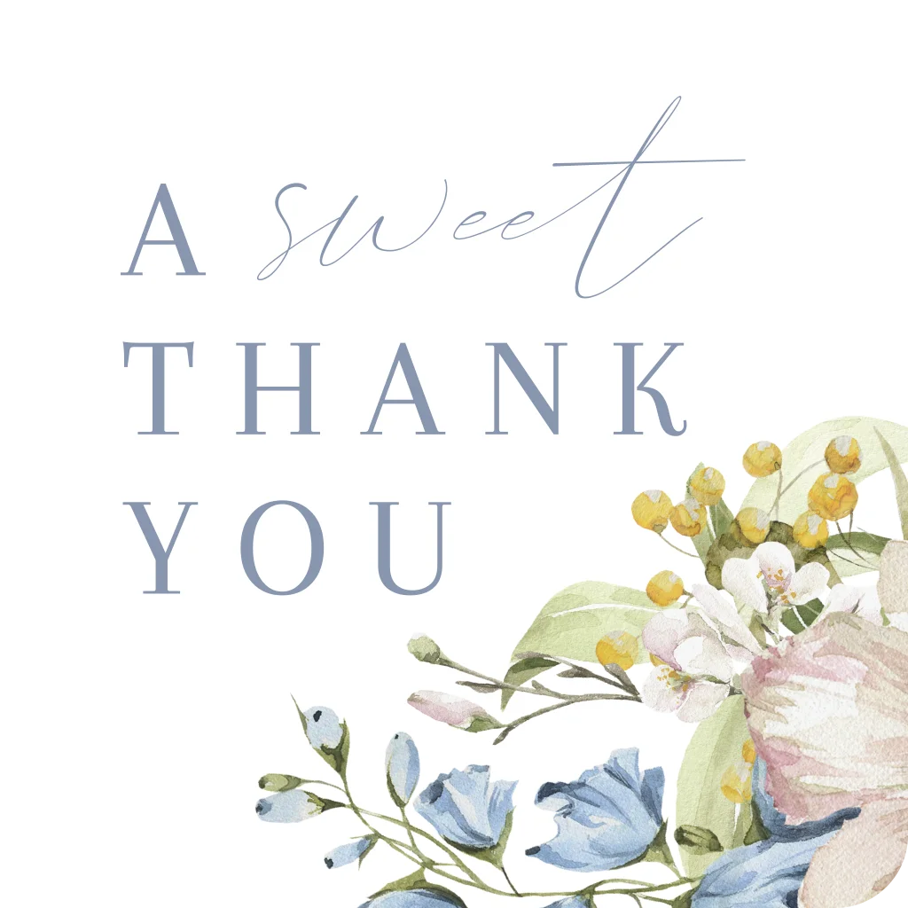 Een bedanktsticker vierkant met ronde hoeken. Plak deze sticker op bedankjes die de gasten aan het einde van de trouwdag meekrijgen. Zo maak je de bedankjes origineel en persoonlijk. Je bestelt de stickers per vel.* Ontwerp in stijl van de kaart