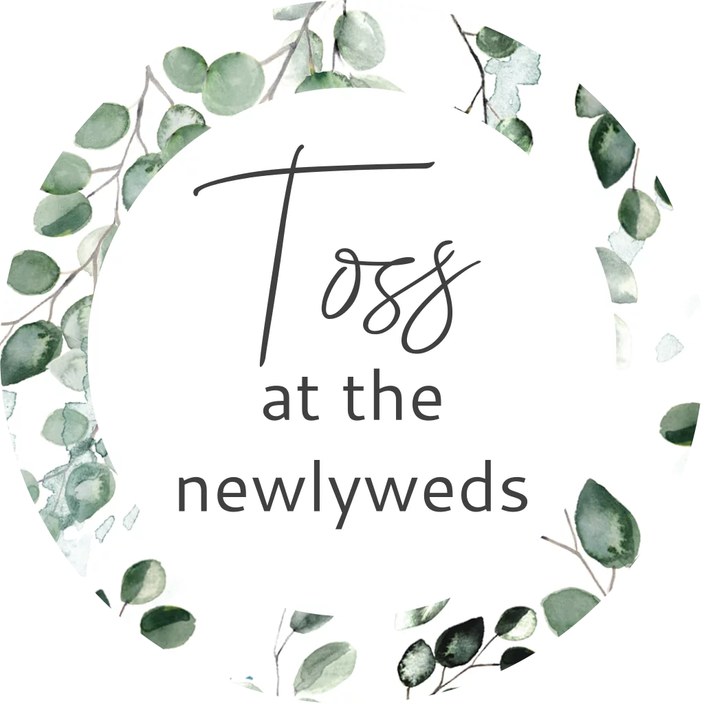 Deze sticker voor confetti met blaadjes maakt deel uit van een trouwkaartenset.
