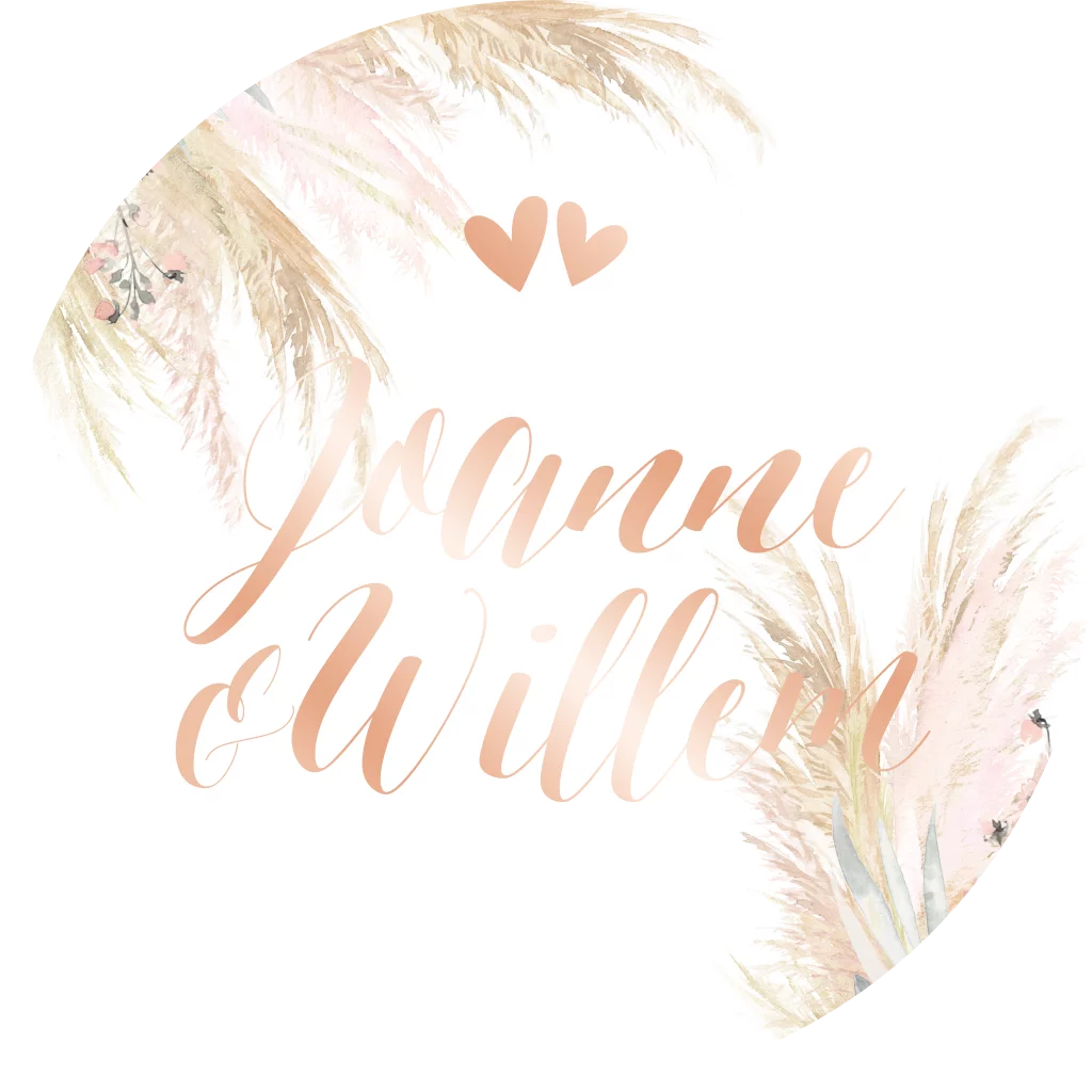 Maak een sticker die passend is bij je trouwkaart. In de editor pas je eenvoudig de namen en illustraties aan.* Ontwerp in stijl van de kaart