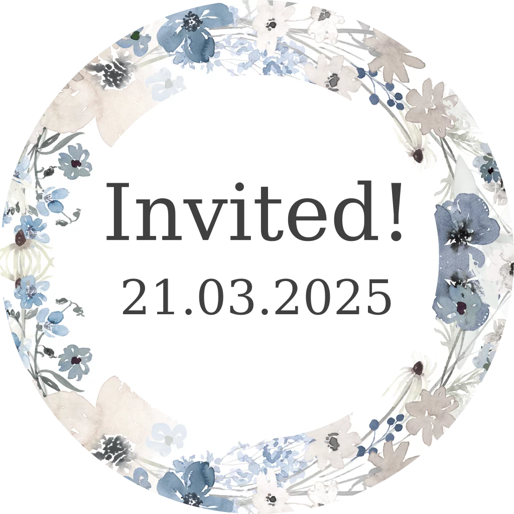Maak zelf een sticker voor op een envelop met blauwe bloemen. Maak dit een origineel ontwerp door jullie datum in te voeren.