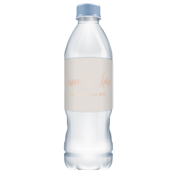 Ontwerp een sticker voor flesje om uit te delen op de bruiloft. Stop het flesje water bijvoorbeeld in een goodiebag. Dit is een sticker met rosefolie.| Totaalprijs: 0 |