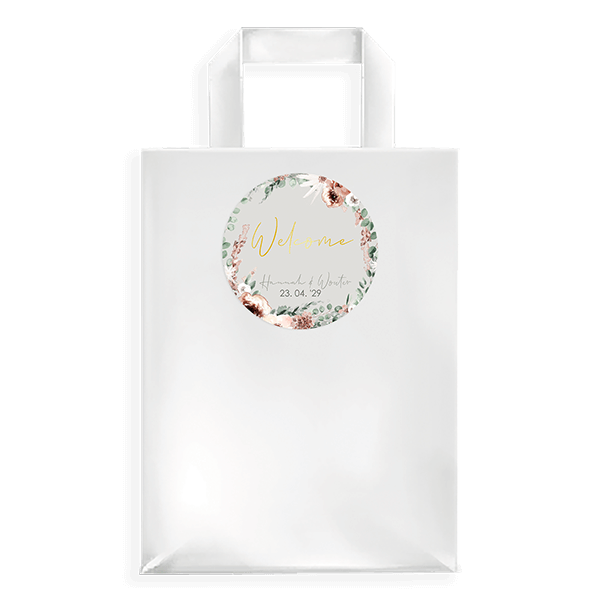 Personaliseer je goodiebag door deze sticker erop te plakken. Dit is een sticker met bloemen en goudfolie.