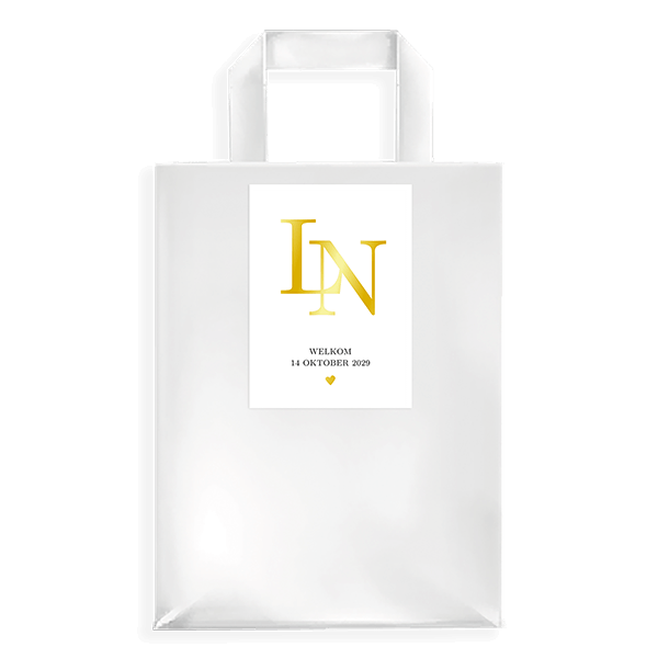 Verwelkom je gasten met een goddiebag vol producten zoals een waterflesje, zonnebrand, snoepjes en confetti. Plak op de goodiebag een welkoms sticker met goudfolie.
