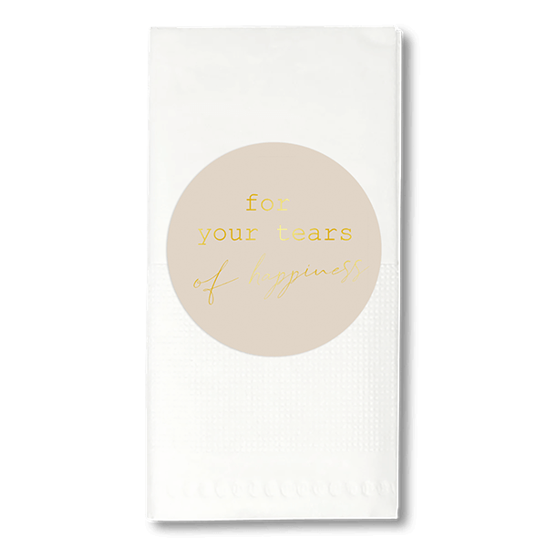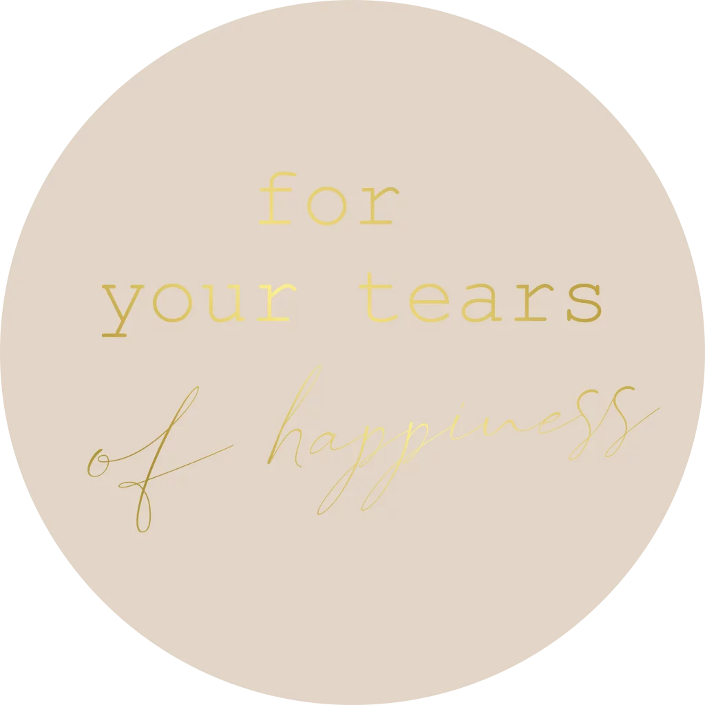 Passend bij een trouwkaart ontwerp je zelf een mooie sticker for happy tears. Plak deze stickers op een zakje met een zakdoekje. Leuk voor bij de trouwceremonie.