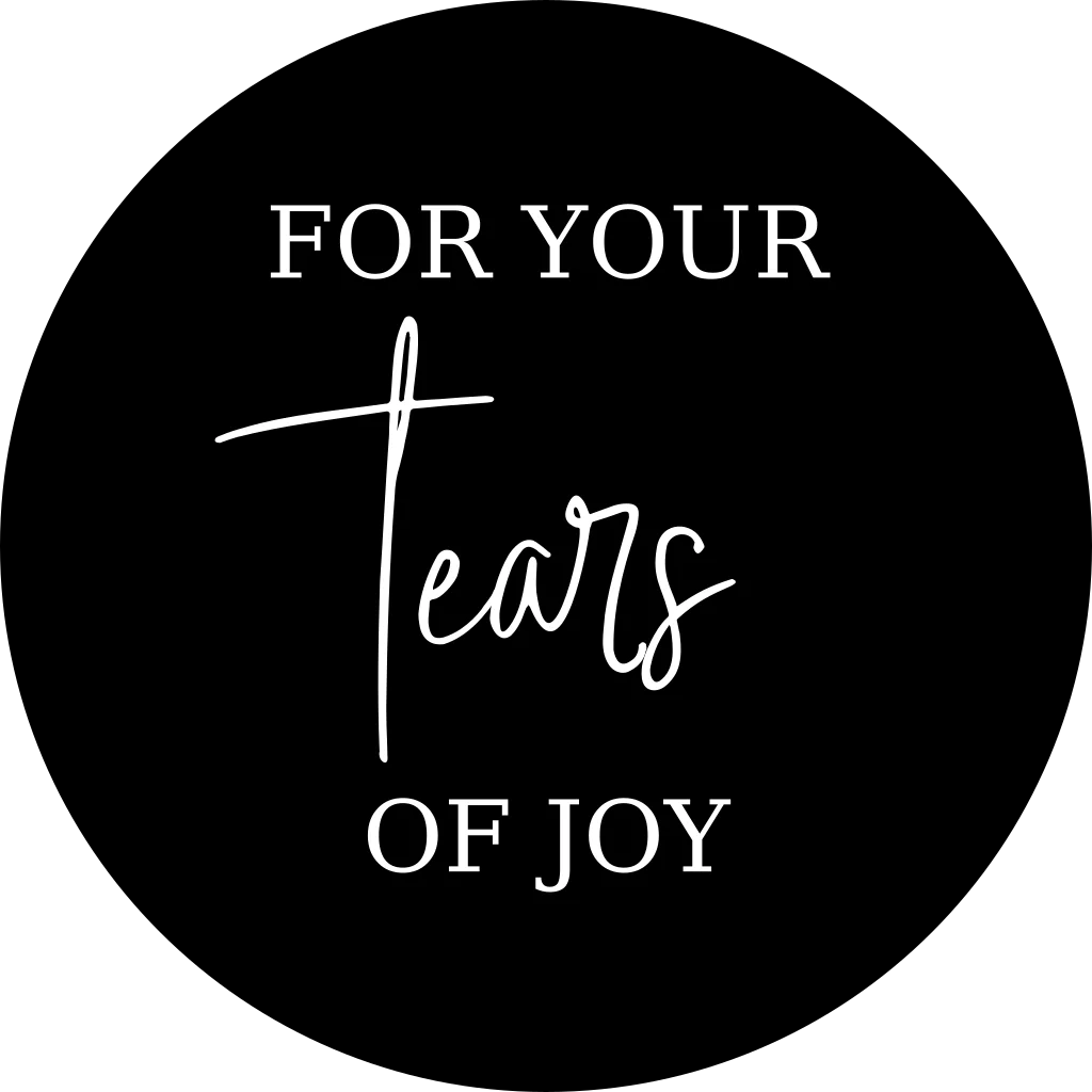 Ontwerp een sticker voor de happy tears tijdens jullie bruiloft. Deze sticker plak je op een pakje zakdoekjes.