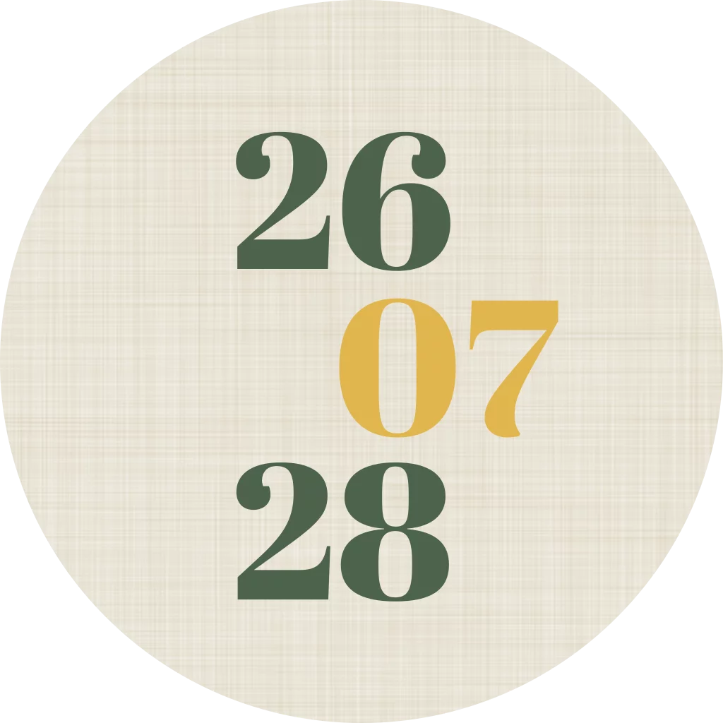 Passend bij een trouwkaart in dezelfde stijl maak je deze sticker. Dit is een sticker in groen en geel met de datum.
