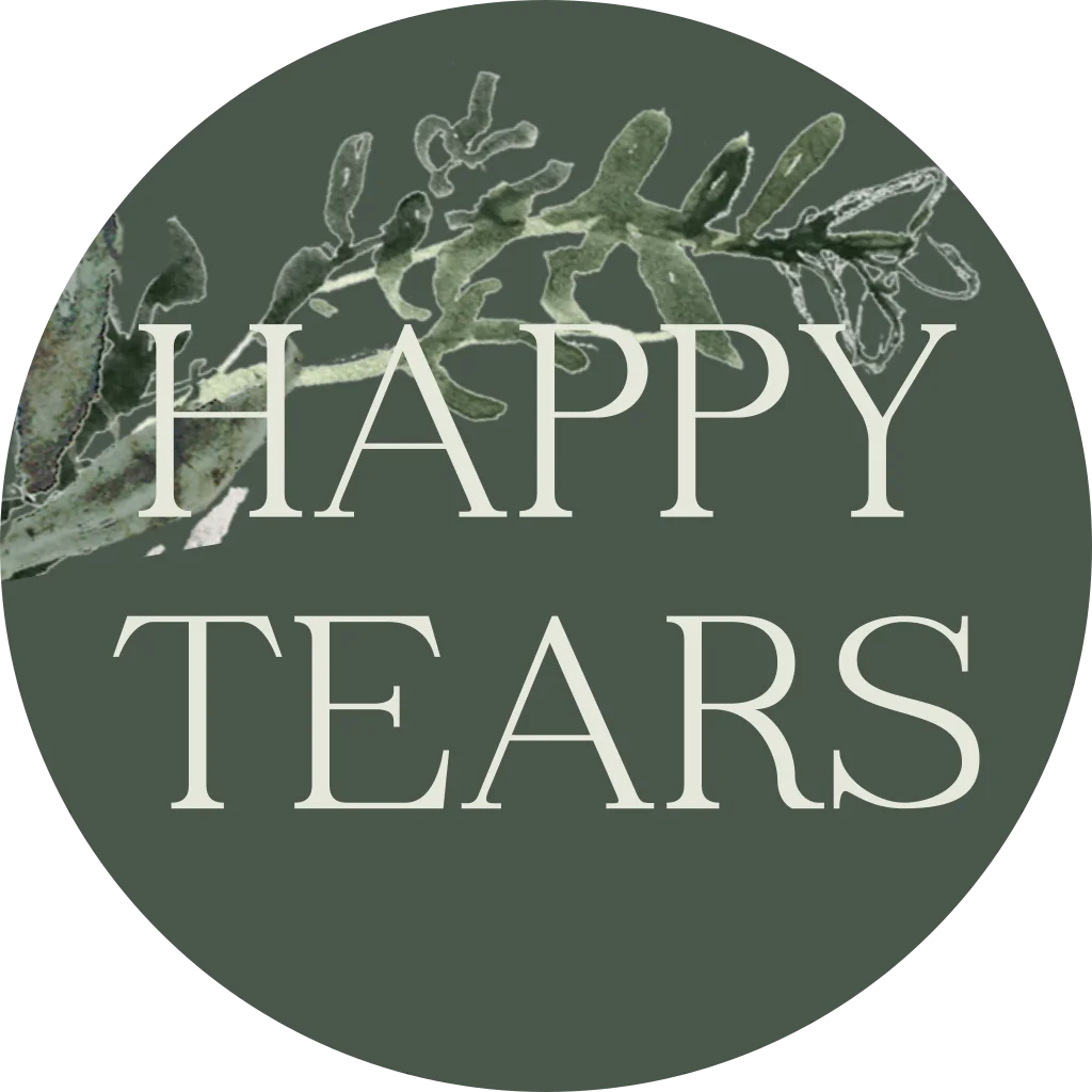 Deze happy tears sticker met blaadjes maakt deel uit van een trouwkaartenset.