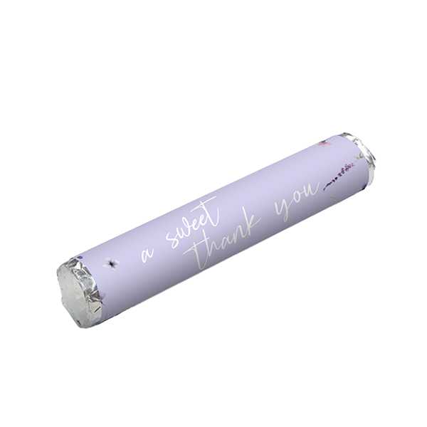 Plak dit etiket op een rolsnoep als bedankjes voor je gasten. Dit ontwerp past bij de trouwkaart; ORIGINELE TROUWKAART MET PAARSE BLOEMETJES