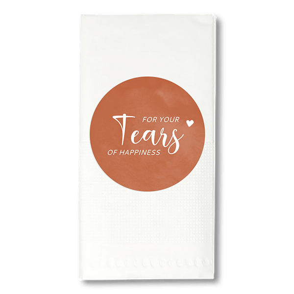 Sticker for your tears of happiness. Plak de sticker op zakdoekjes voor je gasten tijdens de bruiloft. De sticker past bij de trouwkaartenset vintage color. De stickers kunnen het beste op de verpakking van de zakdoekjes geplakt worden, maar op de zakdoekjes zelf kan ook. Wij leveren alleen de stickers en niet de zakdoekjes.