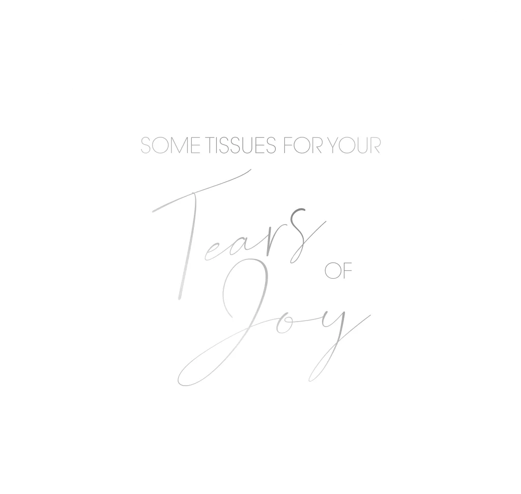 Deze tears of joy sticker maakt deel uit van een trouwkaartenset.
