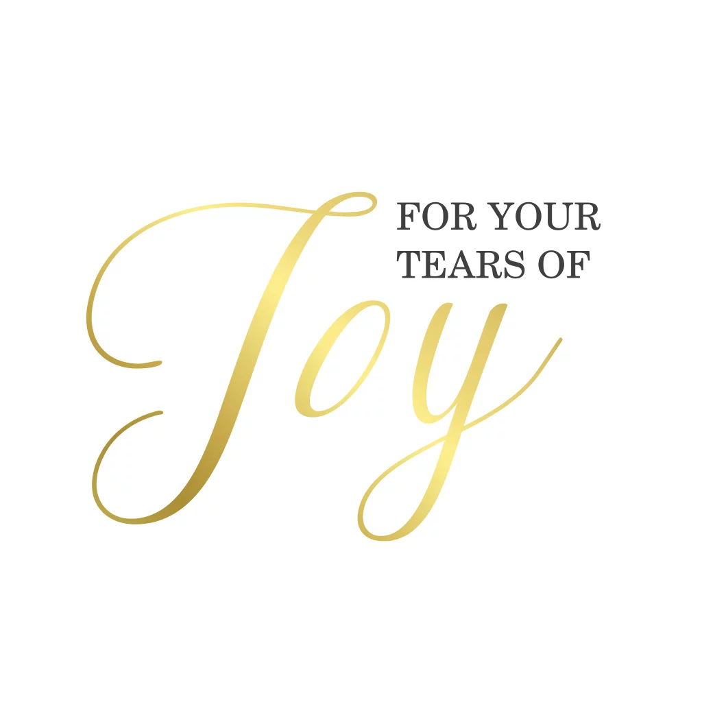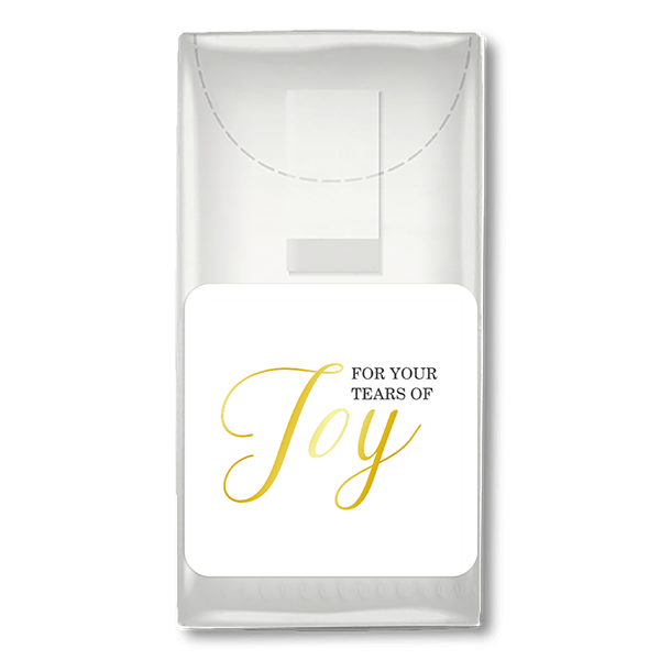 Plak deze vierkant sticker met goudfolie op je zakdoekjes voor je gasten tijdens de bruiloft om hun tears of joy weg te vegen. De stickers kunnen het beste op de verpakking van de zakdoekjes geplakt worden, maar op de zakdoekjes zelf kan ook. Wij leveren alleen de stickers en niet de zakdoekjes.