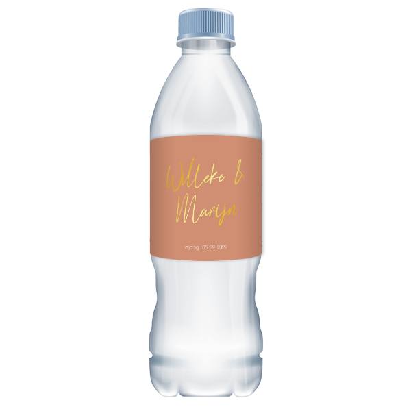 Voorzie je gasten van een flesje water met een etiket die past bij jullie bruiloft.