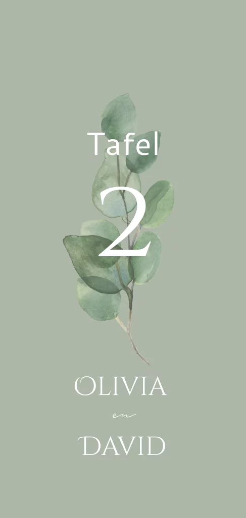 Ontwerp een tafelnummerkaart met eucalyptusblaadjes.| Totaalprijs: 0 |