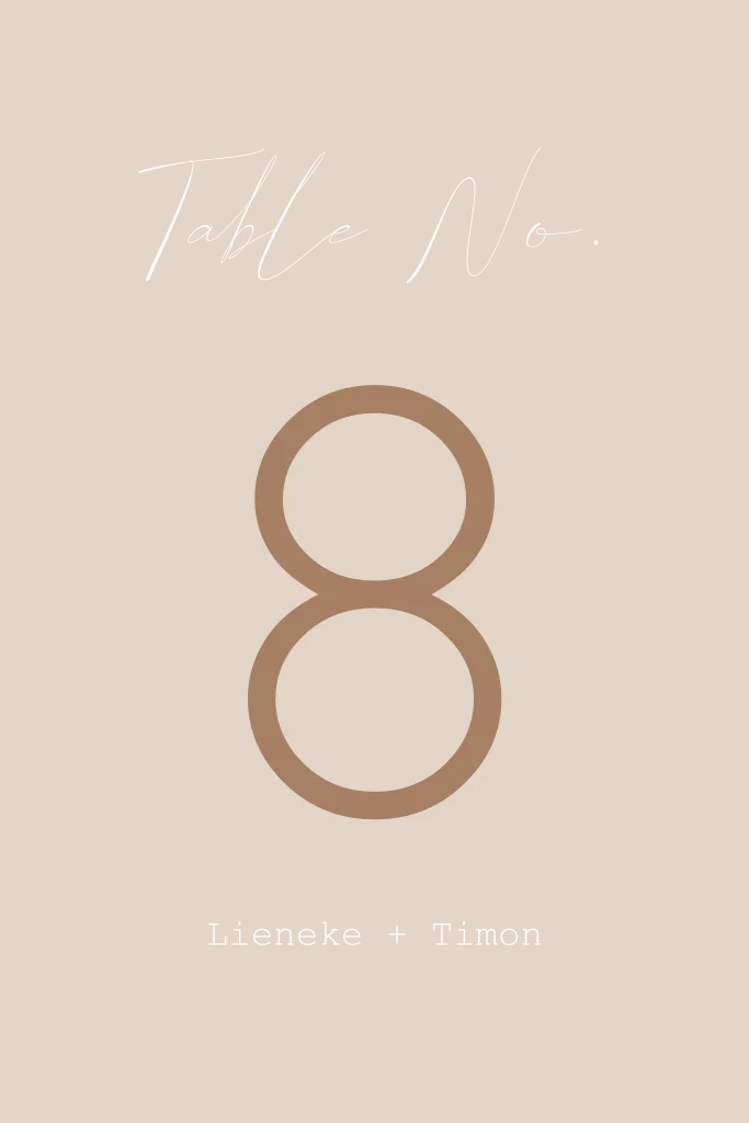 Maak een stijlvolle kaart in beige met het tafelnummer om te gebruiken tijdens het diner. Op beide zijden wordt goudfolie gedrukt. Let op dat je op beide zijden de aanpassingen maakt.Totaalprijs: 0 |
