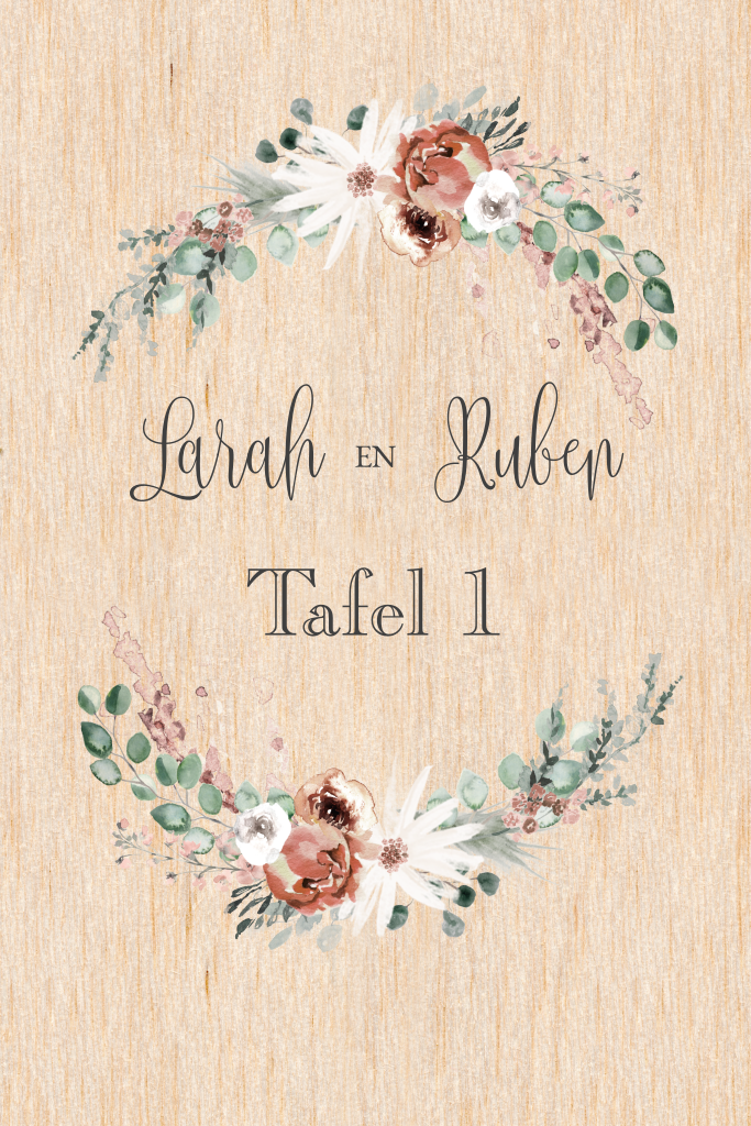 Een mooie eyecatcher op jullie dinertafel: deze tafelnummerkaart! In dezelfde stijl kun je ook menukaarten en naamkaartjes bestellen.