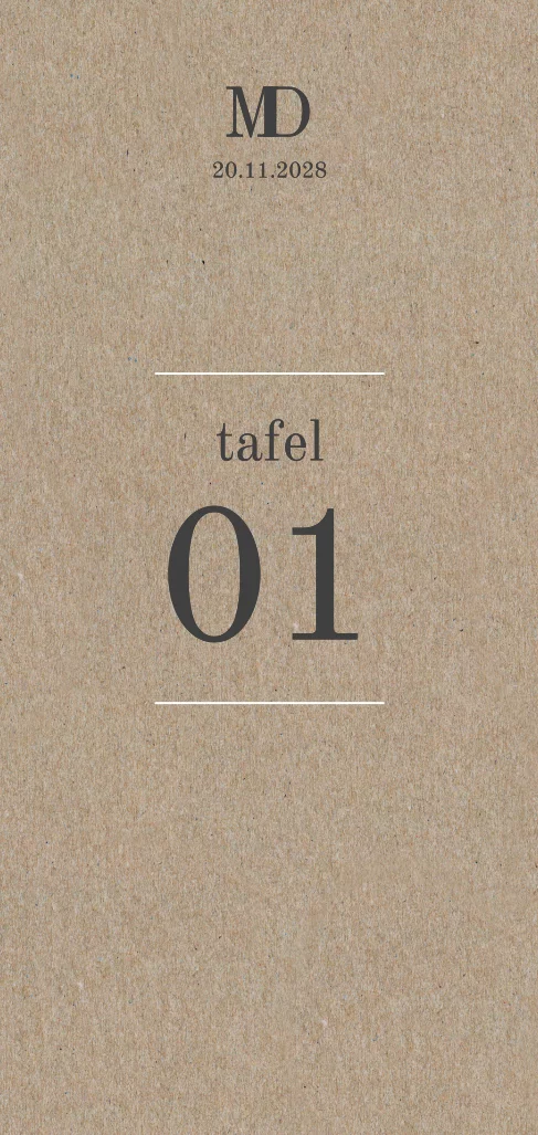 Een tafelnummerbordje op kraftpapier. Maak een uniek bordje voor op de tafel bij jullie bruiloft met kraftpapier.