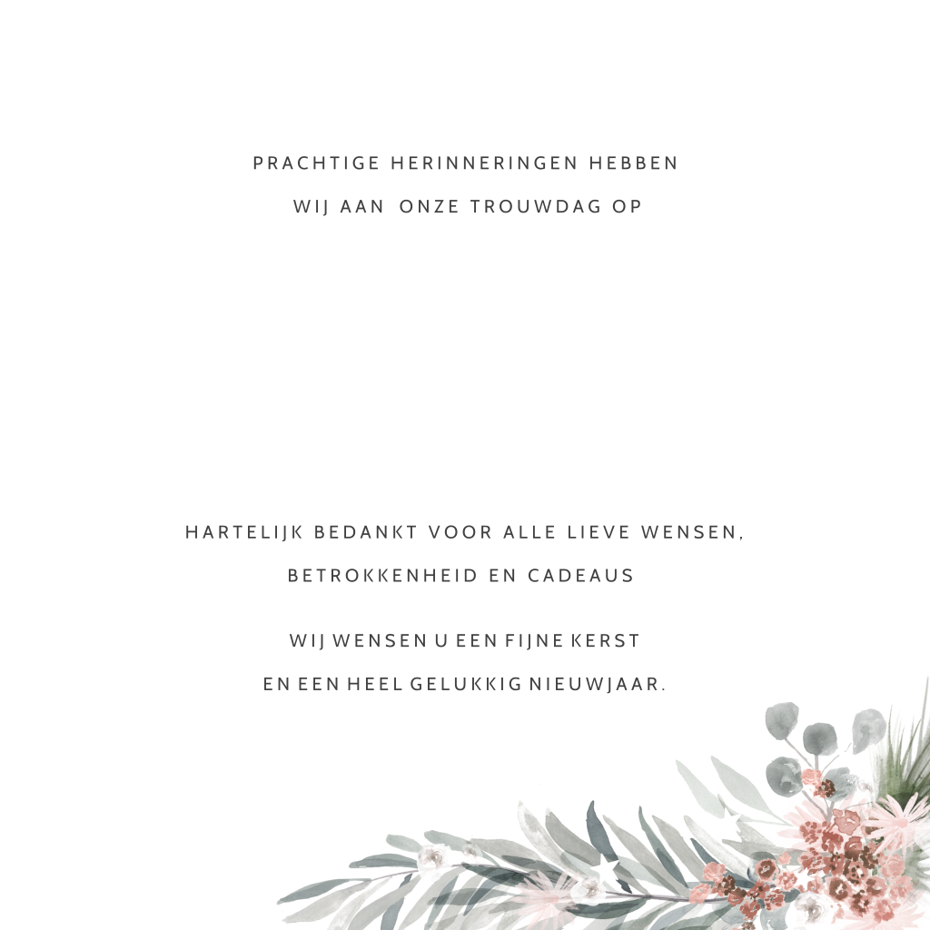Maak jullie eigen kerst bedankkaartjes met dit voorbeeld. Je kunt de teksten aanpassen in de kaartopmaker en een trouwfoto uploaden.