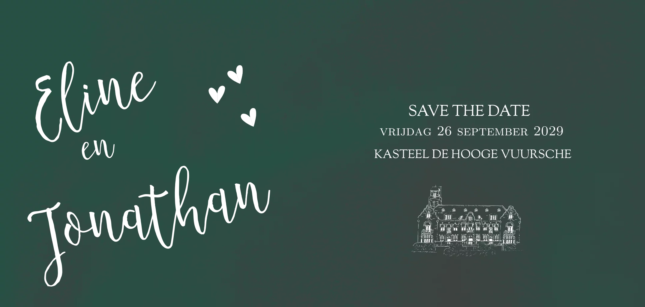 Een prachtige Save the Date kaart met echte goudfolie, hartjes en kasteel. In de kaartopmaker kun je aanpassingen doen. Zo kun je de kleur van de achtergrond veranderen in elke andere gewenste kleur die past bij jullie bruiloft. Op deze Save the Date kaart staat een afbeelding van een kasteel. We hebben in de beeldbank meerdere afbeeldingen van kastelen.