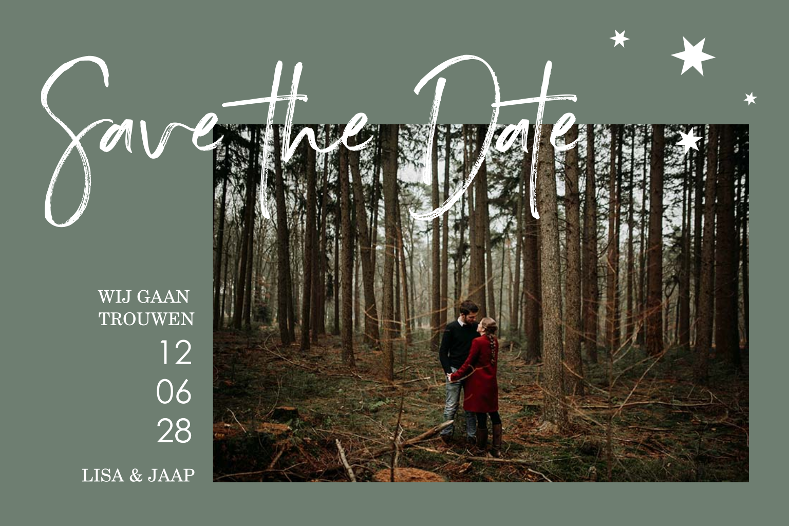 Stuur voor de kerst deze mooie Save the Date kerstkaart met goudfolie en foto. Plaats in de kaartopmaker zelf jullie foto. Deze is makkelijk bij te snijden.