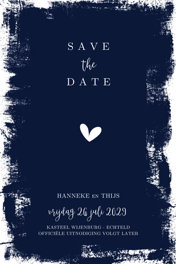 Het chique roséfolie met de grove verfstrepen geven een leuk contrast en eigen stijl op deze stijlvolle Save the Date kaart. Past deze Save the Date bij jullie bruiloft?