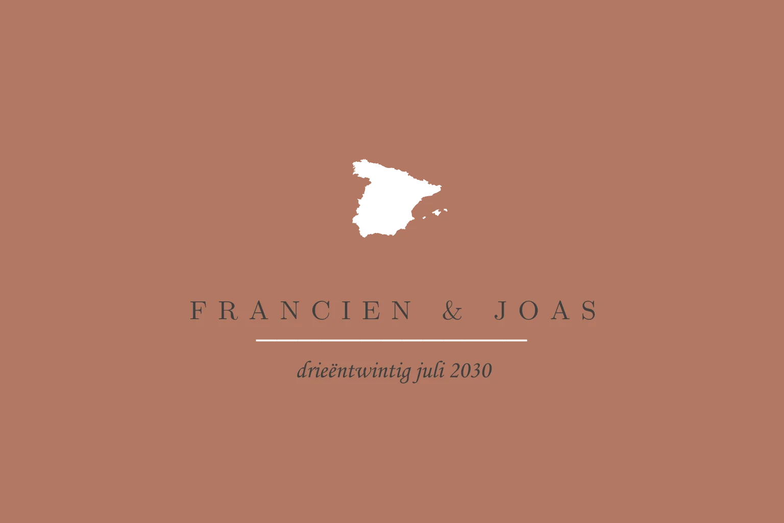 Trouwen in Frankrijk? Kies dan voor dit Save the Date kaartje waar de afbeelding van het land Frankrijk met goudfolie wordt gedrukt. Laat familie en vrienden weten dat jullie in Frankrijk gaan trouwen. De achtergrondkleur is aan te passen in de kaartopmaker naar een kleur die past bij jullie bruiloft.