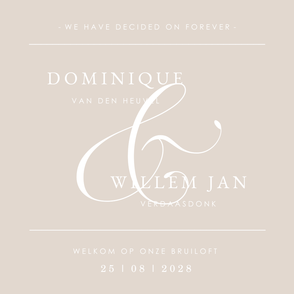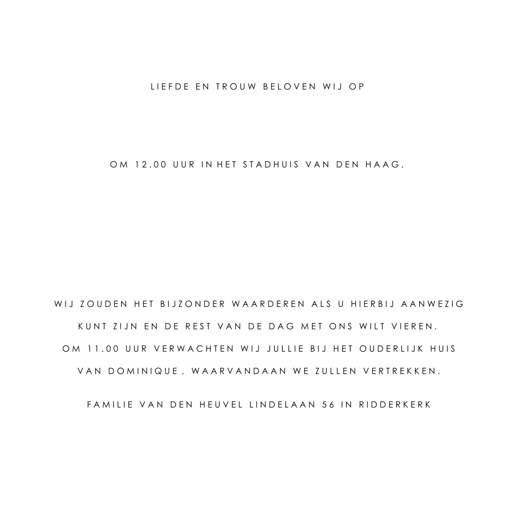 De goudfolie maakt deze trouwkaart chique. In de kaartopmaker kun je ook voor zilver of koperfolie kiezen. Klik alle onderdelen aan en wijzig de teksten. Zo maak je een originele trouwkaart met goudfolie.