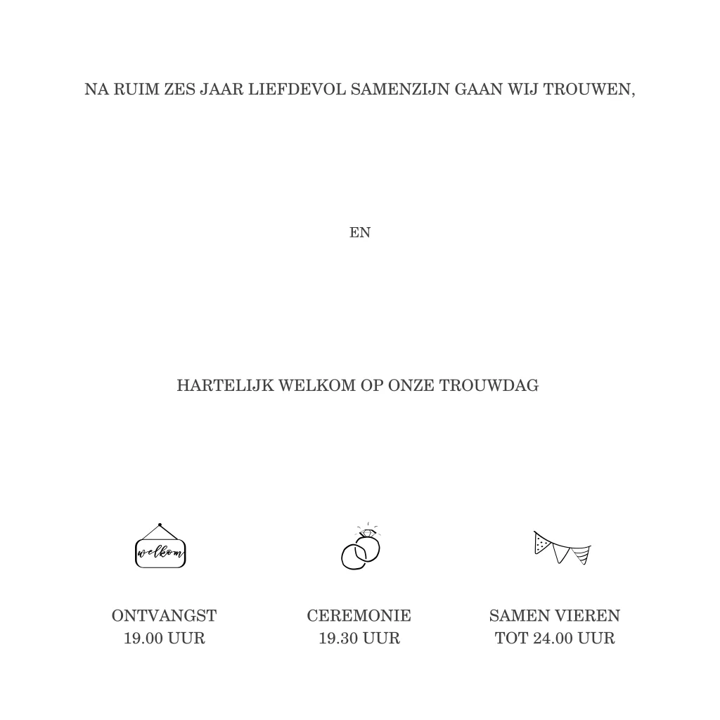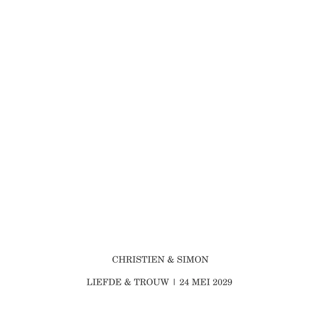 Een klassieke trouwkaart met een krans in goudfolie. De krans en initialen op deze trouwkaarten worden met goudfolie gedrukt. Deze goudfolie ligt op de trouwkaart. In de kaartopmaker kun je een mooie combinatie maken van jullie initialen.