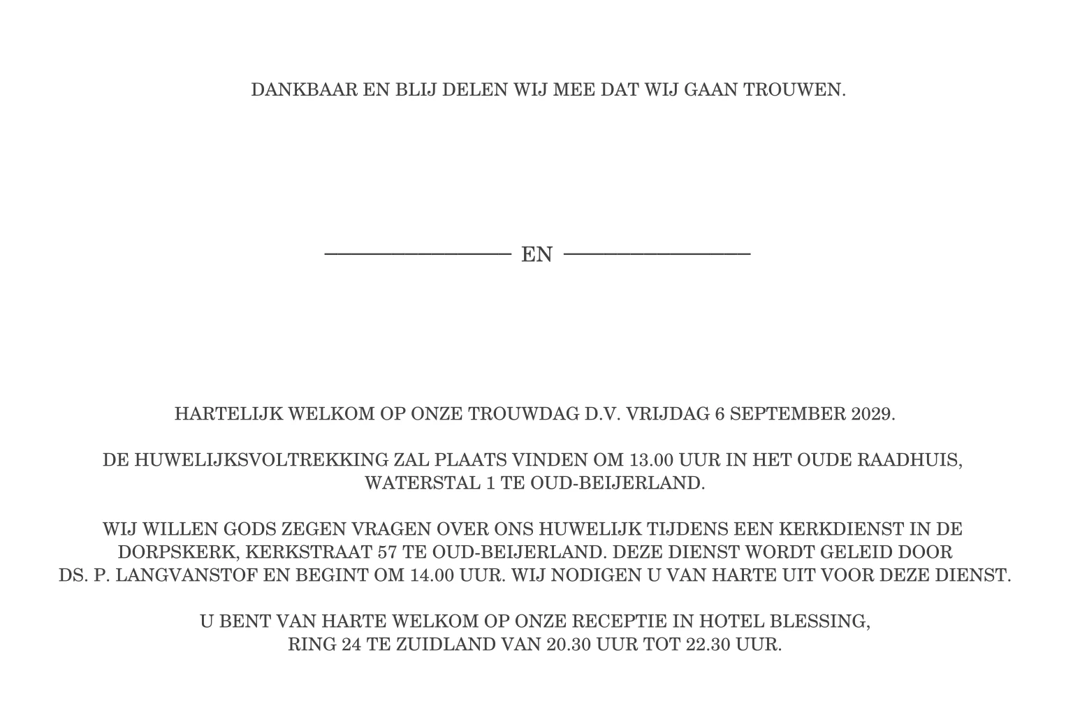 Een klassieke trouwkaart met initialen in goudfolie. De initialen op deze trouwkaarten worden met goudfolie gedrukt. Deze goudfolief ligt op de trouwkaart. In de kaartopmaker kun je een mooie combinatie maken van jullie initialen. Als je onze hulp daarbij kunt gebruiken, dan horen we het graag.